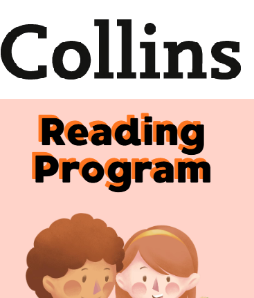 Material visual y textos Collins que desarrollan comprensión lectora básica infantil.